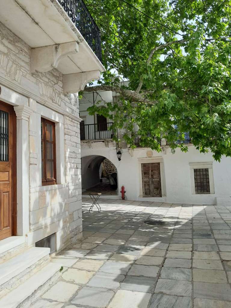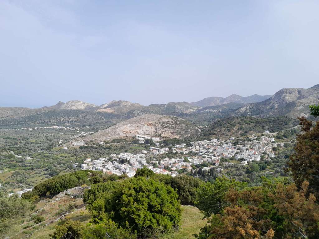 Je commence ma visite par le village de Filoti. Joli mais je cherche encore plus d’authenticité, de vie quotidienne. Je suis curieux de la vie des locaux sur un aussi beau territoire mais aussi rude et soumis aux éléments parfois violents. Je continue ma route et suis surpris du silence total qui règne partout, à part le vent, mes oreilles sont enfin satisfaites de leur quête de la tranquillité. Je ne supporte plus la vie citadine, l’absence de sens, la folie, la foule, l’inutile, l’ennui, l’hystérie, les dogmes… bref toute la merde qui régente de plus en plus ma vie. Je rêve d’embarquer mes deux filles pour nous affranchir des con.nes (notez mon effort pour l’inclusivité et éviter que personne ne se sente « invisibilisé.e » ou « ostracisé.e » comme on dit aujourd’hui). Mais en attendant je savoure ce moment de décalage. Je ne croise d’ailleurs quasiment personne à voiture, à se demander où sont les touristes mais aussi les habitants. J’arrive enfin au clou du spectacle, le village haut perché d’Apeiranthos, un bijou, qui de l’extérieur de paie pas de mine, il ressemble aux autres sans élément distinctif particulier.