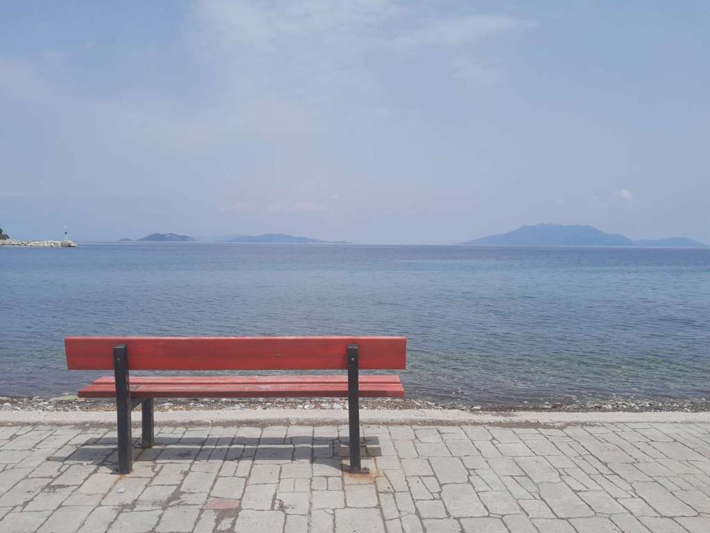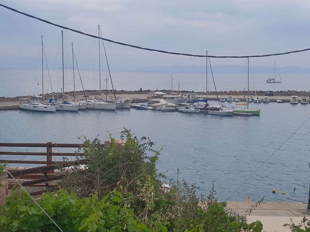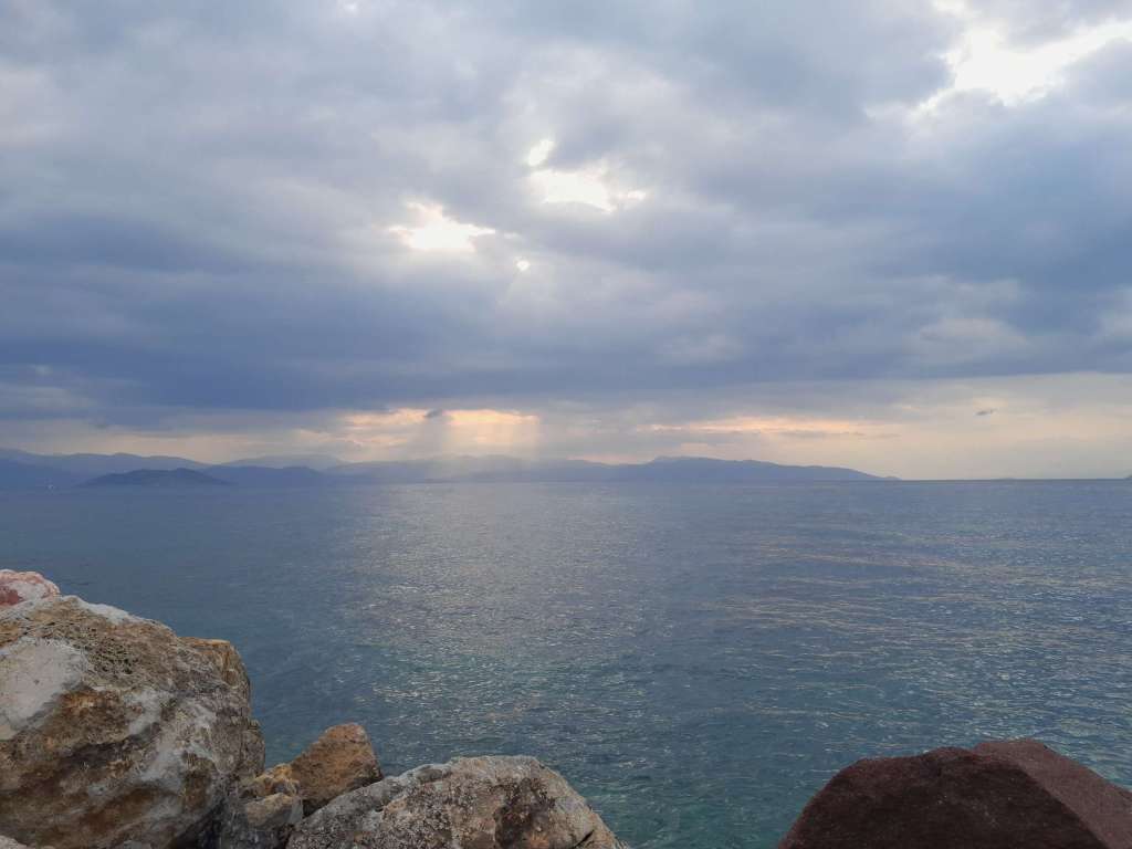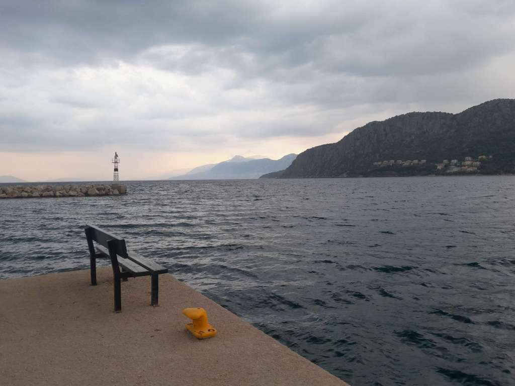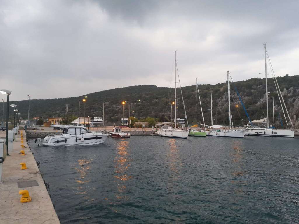 Il a beaucoup plu depuis deux jours et j’ai commis l’erreur d’étendre à l’intérieur une partie de ma lessive de la veille. Erreur fatale car cela a créé de l’humidité dans le bateau toute la nuit. Mais heureusement le soleil revient et assèche rapidement tout le bateau. Le temps d’aller faire quelques rapides courses, me prendre un café au bistrot du port et je dis adieu à mes amis d’escales, deux parisiens du type vieux potes d’enfance, qui ont loué un bateau en laissant leurs femmes à Athenes faire du shopping pendant une semaine. De très sympathiques bonhommes avec lesquels j’ai partagé un verre la veille au soir. Comme souvent en croisière, on croise des gens, on sympathise et on se quitte à jamais. Et la mer referme tout ça et le bateau continue d’avancer, inéluctablement.