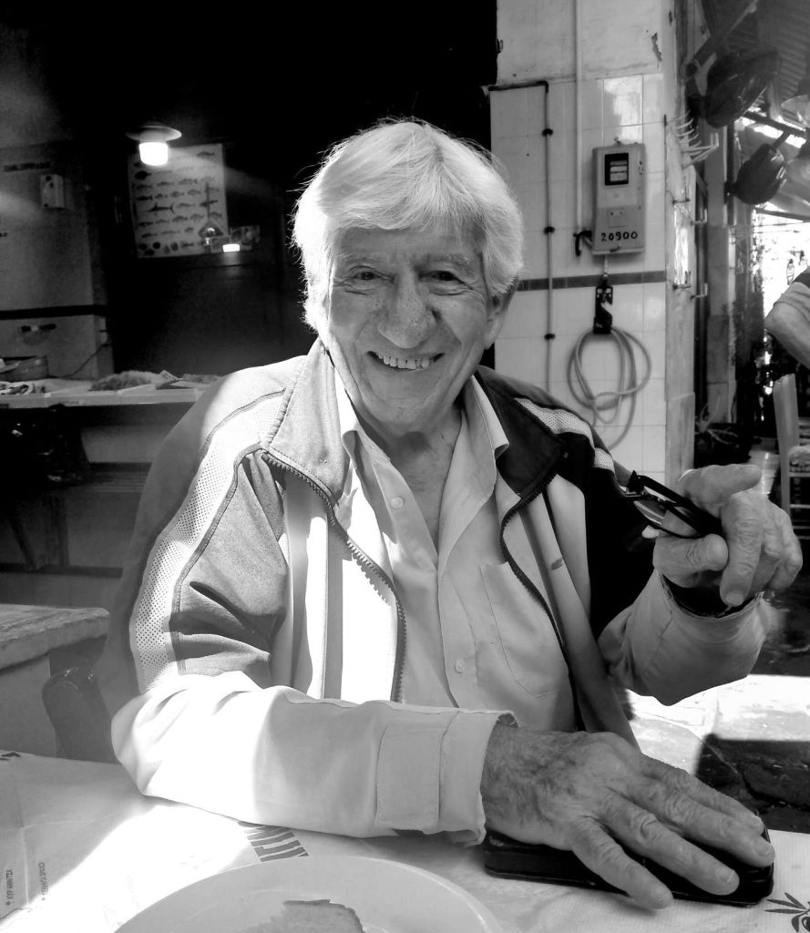 Après une bonne soirée en compagnie de Emmanuelle et Jean Louis, deux amis qui ont également amené leur voilier sur Egine, je passe la matinée de dimanche à humer une dernière fois l’air de cette belle île. Je finis cette parenthèse avec deux anecdotes typiquement grecques. Au moment de déjeuner je m’attable à une taverne située dans la halle aux poissons. C’est alors qu’un vieux monsieur m’interpelle et me demande s’il peut s’asseoir à ma table, ce que j’accepte évidemment. C’est alors qu’il me raconte sa vie du haut de ses 90 ans. Il était clown dans un crique en Europe du Nord puis est aujourd’hui écrivain et poète. On peut facilement le retrouver sur Google, Georges Marinos.