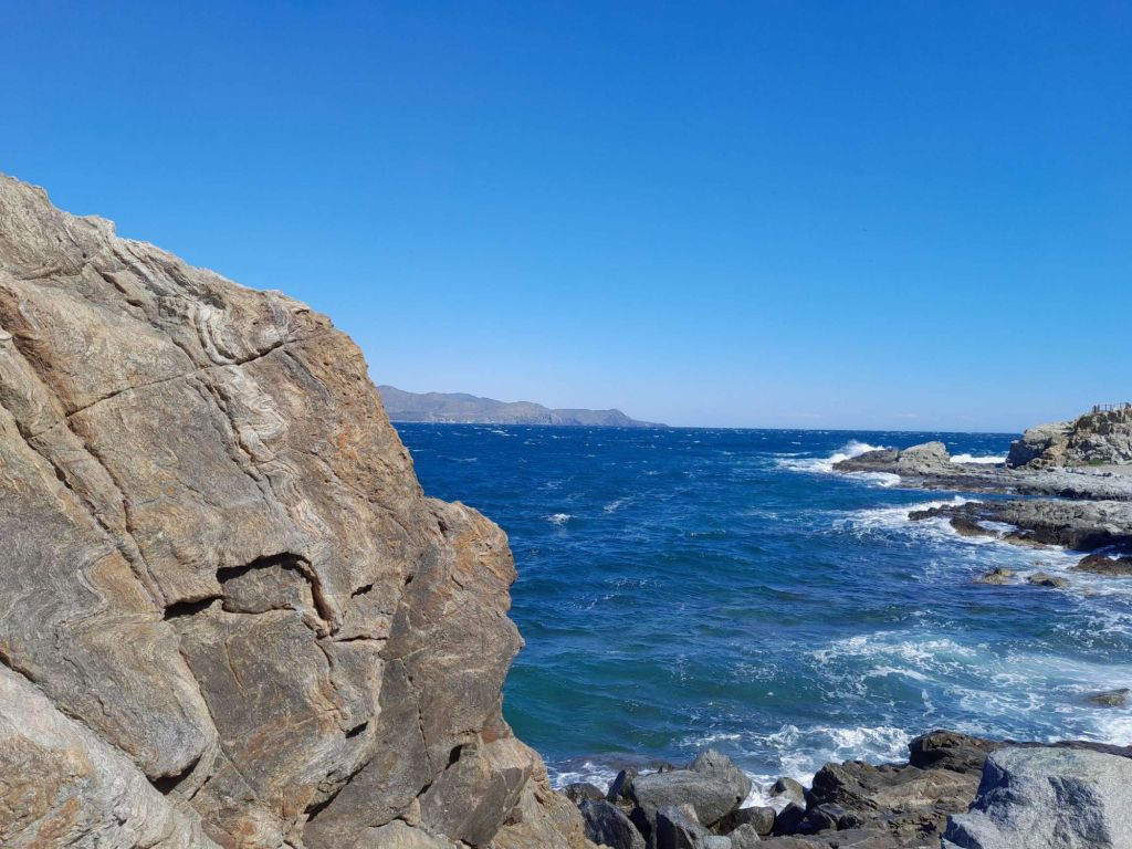 Nous repartons, cette fois pour Cadaques, distante de quelques milles. Le vent est bon, le soleil nous chauffe le corps et Babar nous porte tranquillement par delà la houle générée par la tramontane passée. Passés le cap de Creus, je prépare le déjeuner que nous degustons devant le magnifique spectacle dalinien de cette côte découpée.