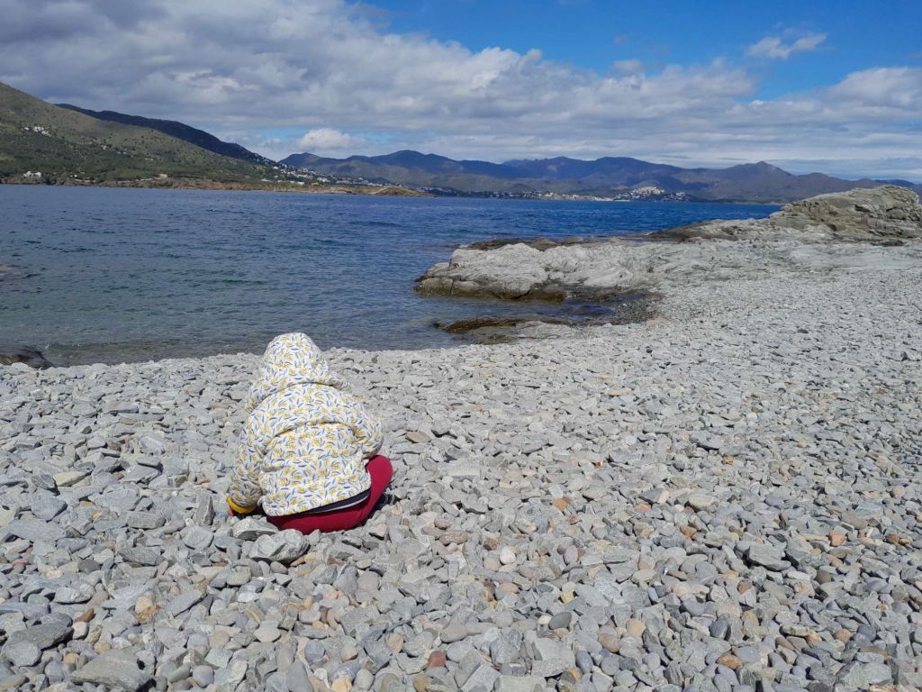 Après quatre nuits passées dans ce magnifique endroit de Port de la Selva, il est temps de reprendre un peu la mer. La forte tramuntana de ces derniers jours nous a un peu engourdis et nous avons tous les trois hâte de repartir. Et pourtant l’endroit est propice à une escale tranquille et heureuse. Raf a trouvé son eldorado avec deux petits parcs pour enfants avec balançoires, toboggans sur la plage et s’est prise de passion pour les cailloux de plage. Et nous, nous avons adopté un rythme lent et apaisant.