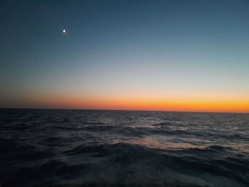 A partir de minuit je lance mes nombreux cycles de siestes de 15 minutes qui me permettent de tenir toute la nuit tout en conservant une veille. Je croise quelques voiles et peu de cargos ou paquebots.