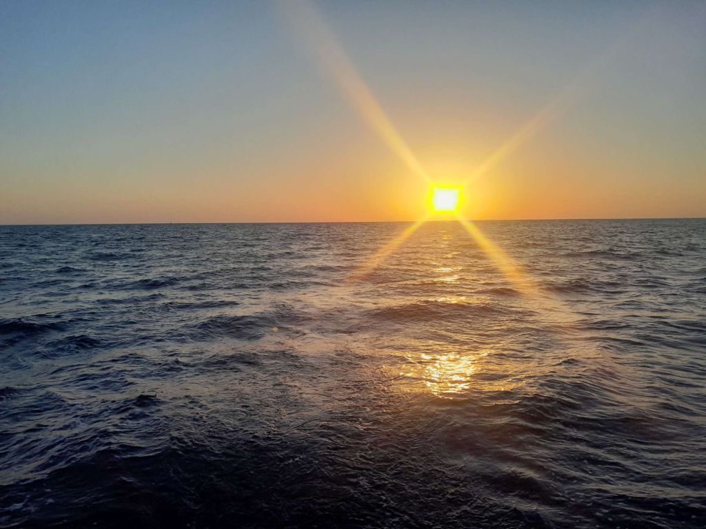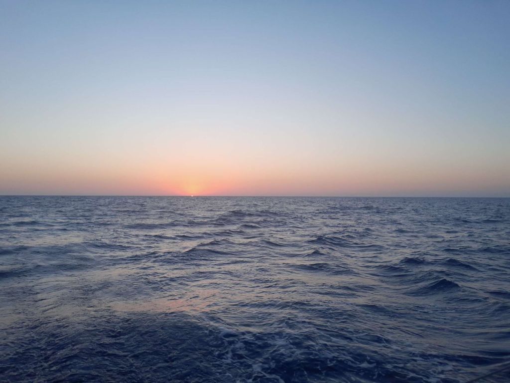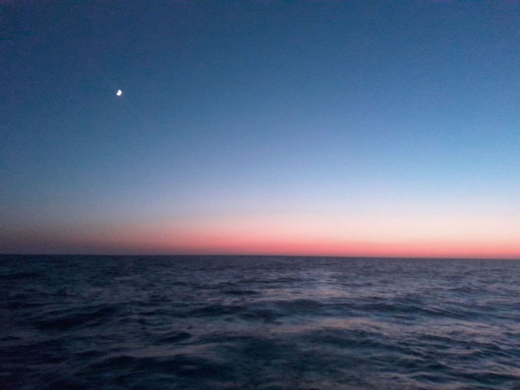 Le temps passe, et moi je m’occupe, entre navigation, lectures, repos et contemplation de la mer. J’aperçois enfin le premier dauphin qui vient me rendre une petite visite de courtoisie mais, solitaire, il ne s’éternise pas et sonde rapidement après quelques foulées à l’étrave.