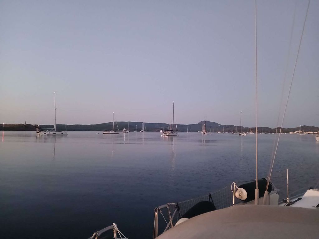 J’ai passé encore une soirée délicieuse sur le pont de Babar à observer sans cesse mon environnement, mais il est temps de préparer la deuxième partie de la croisiere, en famille cette fois. Je lève l’ancre pour rallier Port Addaia où j’ai réservé une place au port pour 3 nuits pour l’arrivée de mes filles qui me manquent tant. La mer est d’huile et je m’entête à rester à la voile en progressant à moins de 3 noeuds. Fort heureusement le vent du nord est arrive au fil de ma patience et j’arrive bientôt dans le chenal d’Addaia. C’est un endroit mal pavé avec beaucoup de hauts fonds mais très bien balisé. Sur les 2 côtés de chaque rives, on peut observer 2 ambiances différentes, d’un côté de belles et charmantes villas au bord de l’eau avec des petits pontons branlants, de l’autre des petites îles désertiques.