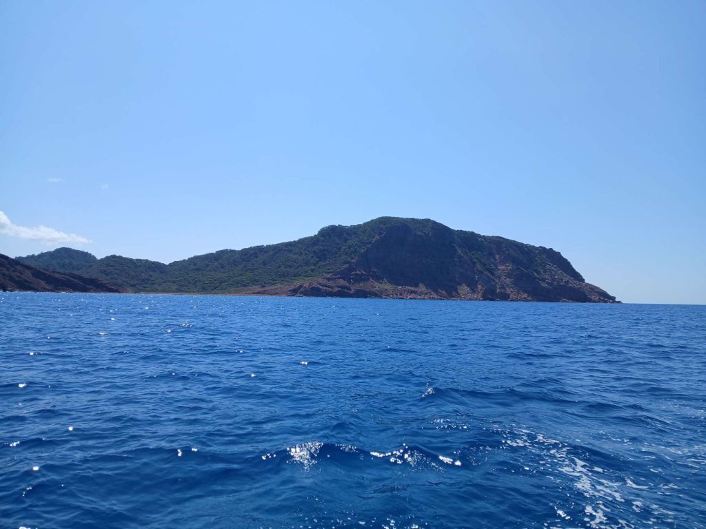 La côte nord est tout simplement magnifique, sauvage, vide. Le vent est faible, je me traîne mais je peux ainsi apprécier ces beautés qui se présentent à moi. Quelques criques et plages rougeâtres coupent les falaises abruptes. Derrière on peut apercevoir des collines certaines verdoyantes. Il n’y a rien ni personne. Est ce mon paradis inspiré de la Grèce ?