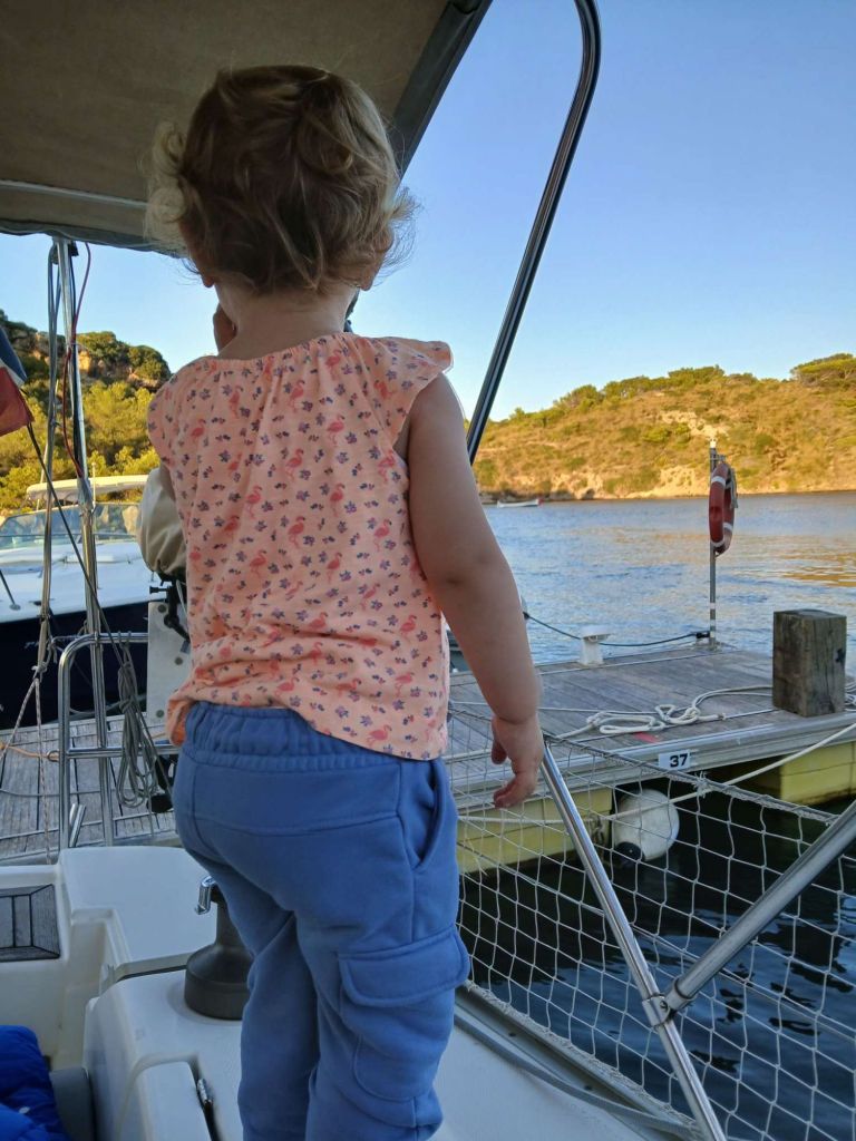 Quel bonheur de partager ces moments avec sa fille à bord. Raphaëlle est toute enthousiaste que l’on soit tous ensemble à bord du fameux bateau de Papa !